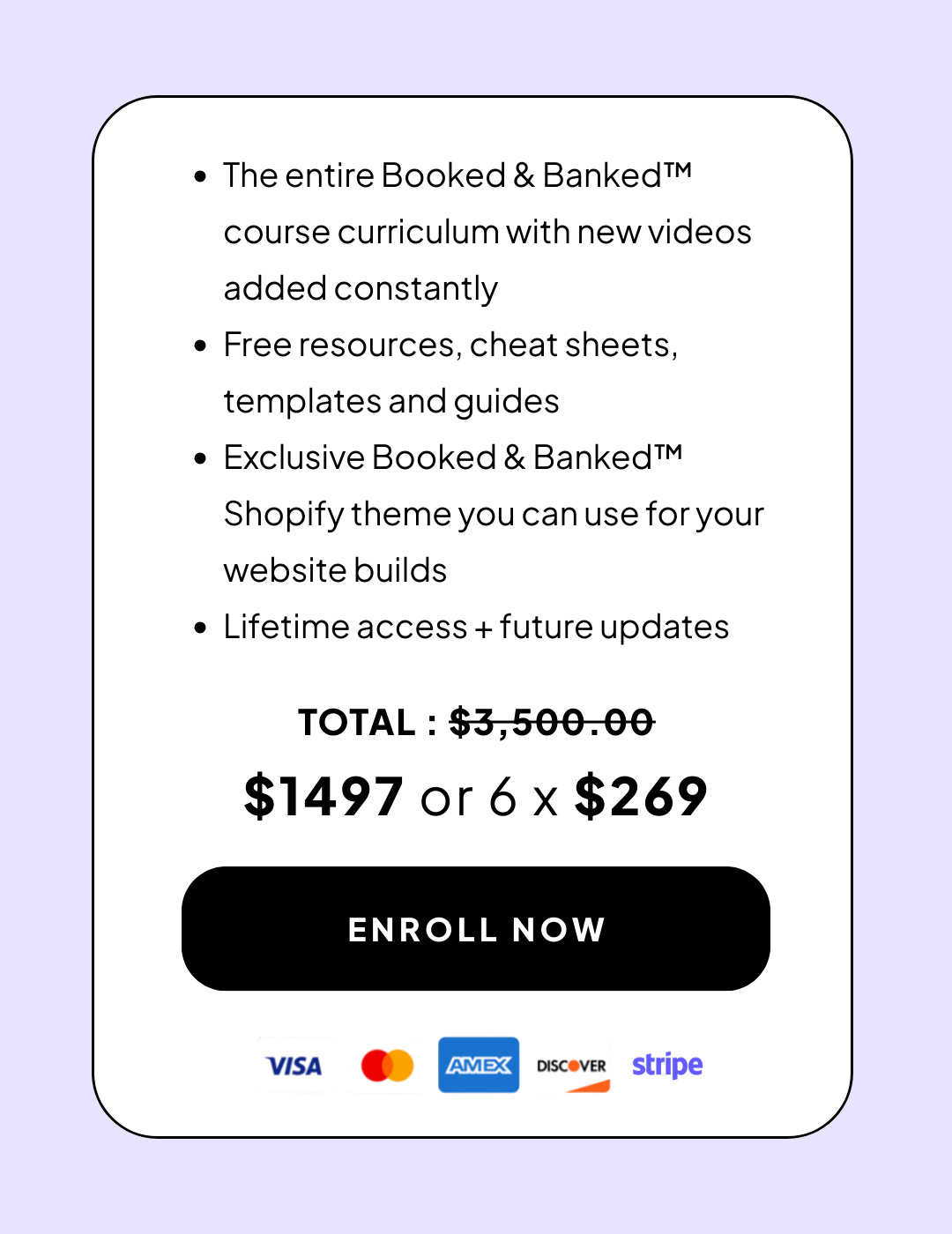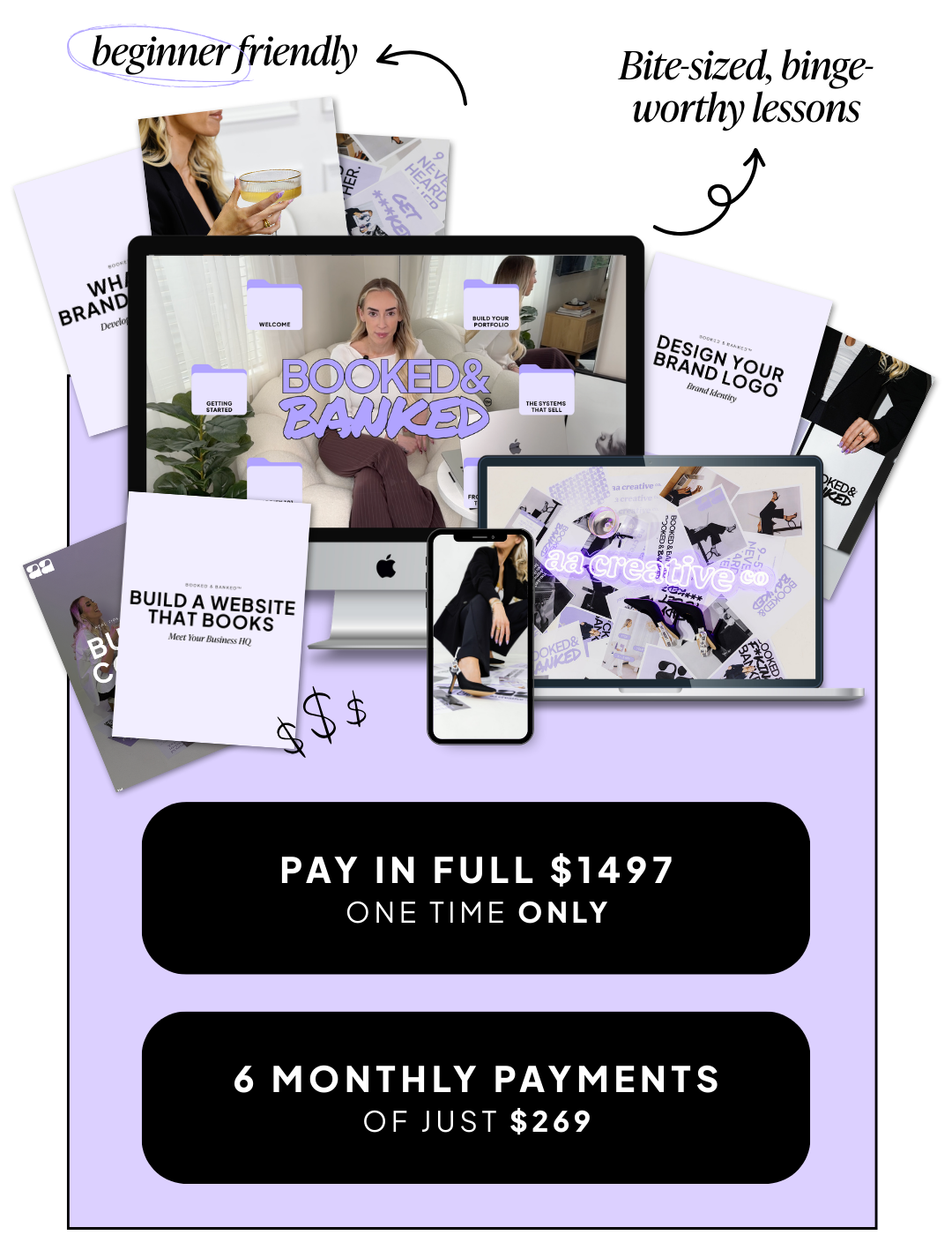 Because of the years of work poured into creating this course, plus all the game-changing free resources you’ll get instant access to, Booked & Banked™ is non-refundable.