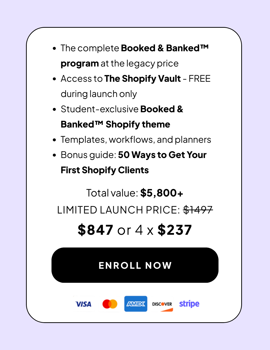 This is a launch-only opportunity to access the full Booked & Banked™ framework, including all bonuses, at the lowest price it will ever be offered.