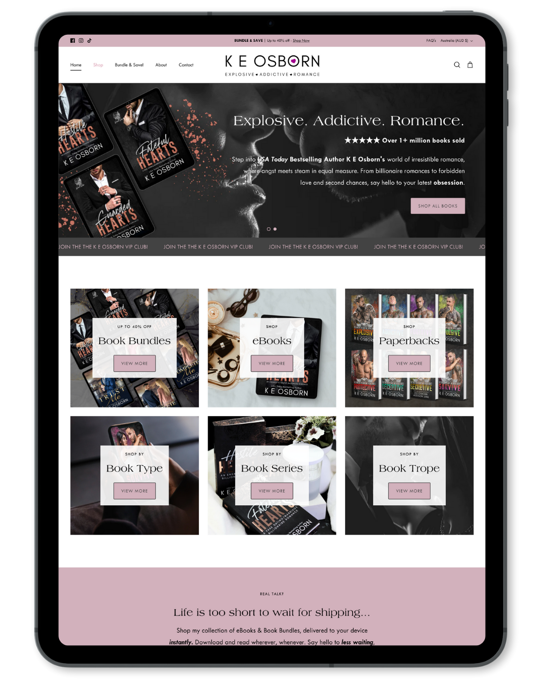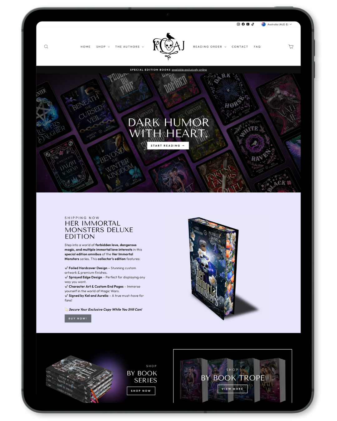 Our website now goes above and beyond the basic functions of an author store, to become a one stop shop for everything Kel Carpenter & Aurelia Jane! AA Creative Co were also great about answering questions for someone who is not the most tech savvy. I would 100% recommend them for your Shopify Website needs!