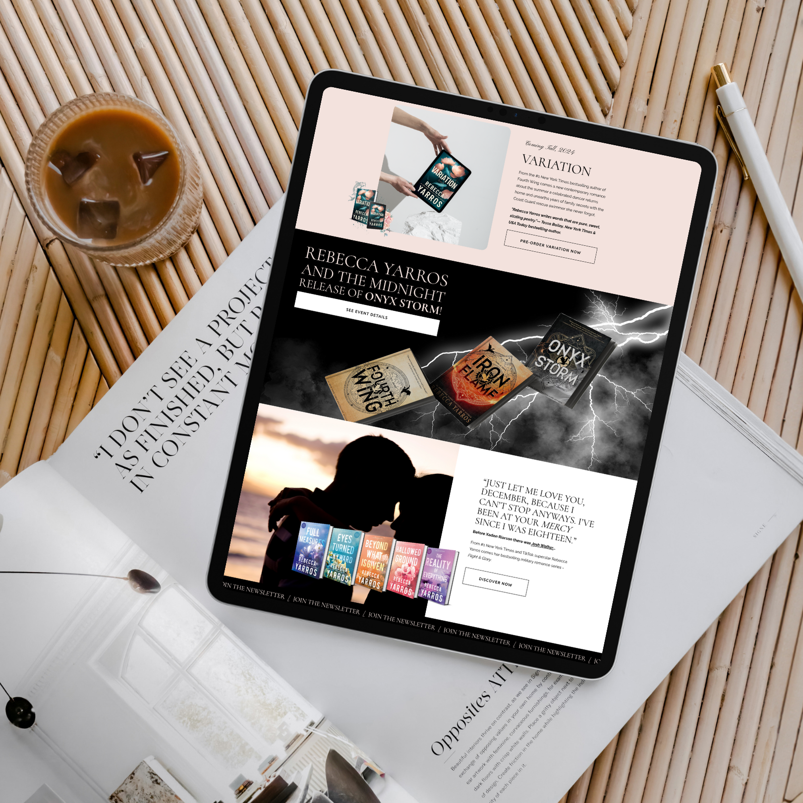 Rebecca Yarros—the bestselling force behind the Fourth Wing phenomenon—needed more than a pretty homepage. She needed a digital HQ that could handle a tidal wave of traffic, showcase a growing universe, and give fans around the world a reason to stay, shop, and obsess. We built her a site that doesn’t just look good—it works hard, sells fast, and scales with every book drop.