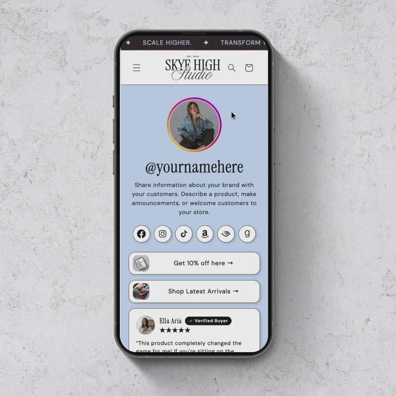 Your One Day Website gets your Shopify store live. This add-on upgrades your links page into something that’s on-brand, strategic, and built to guide clicks where they matter most.